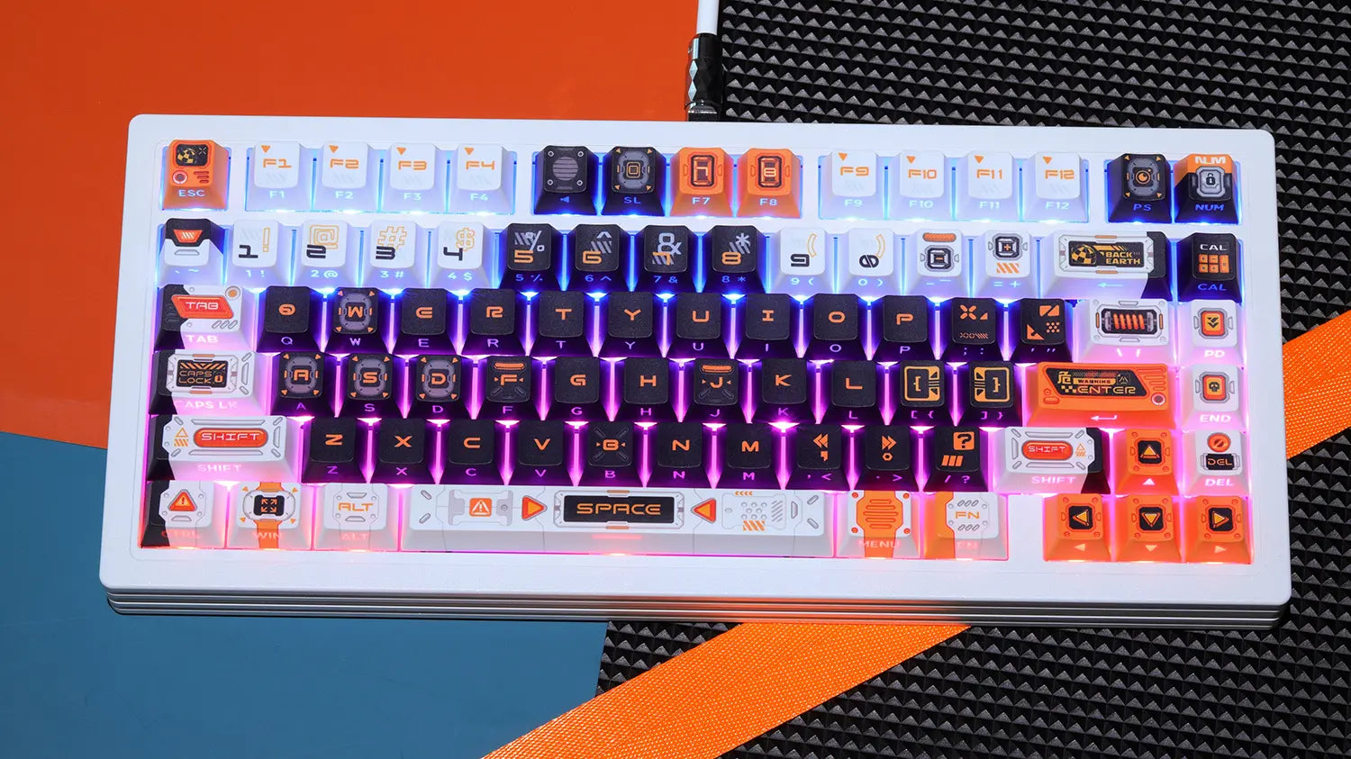 This keyboard features hot-swappable Amber low-profile switches for faster triggering , customizable key values via a WEB control console , and independent RGB backlight control managed by the product's right side dial.
